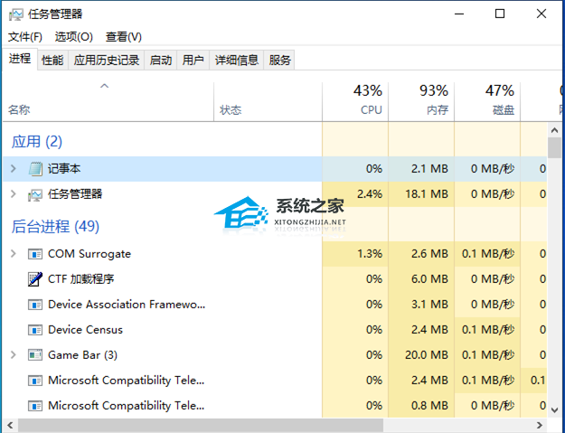 打开任务管理器后,切换到“进程”或“应用程序”标签页。